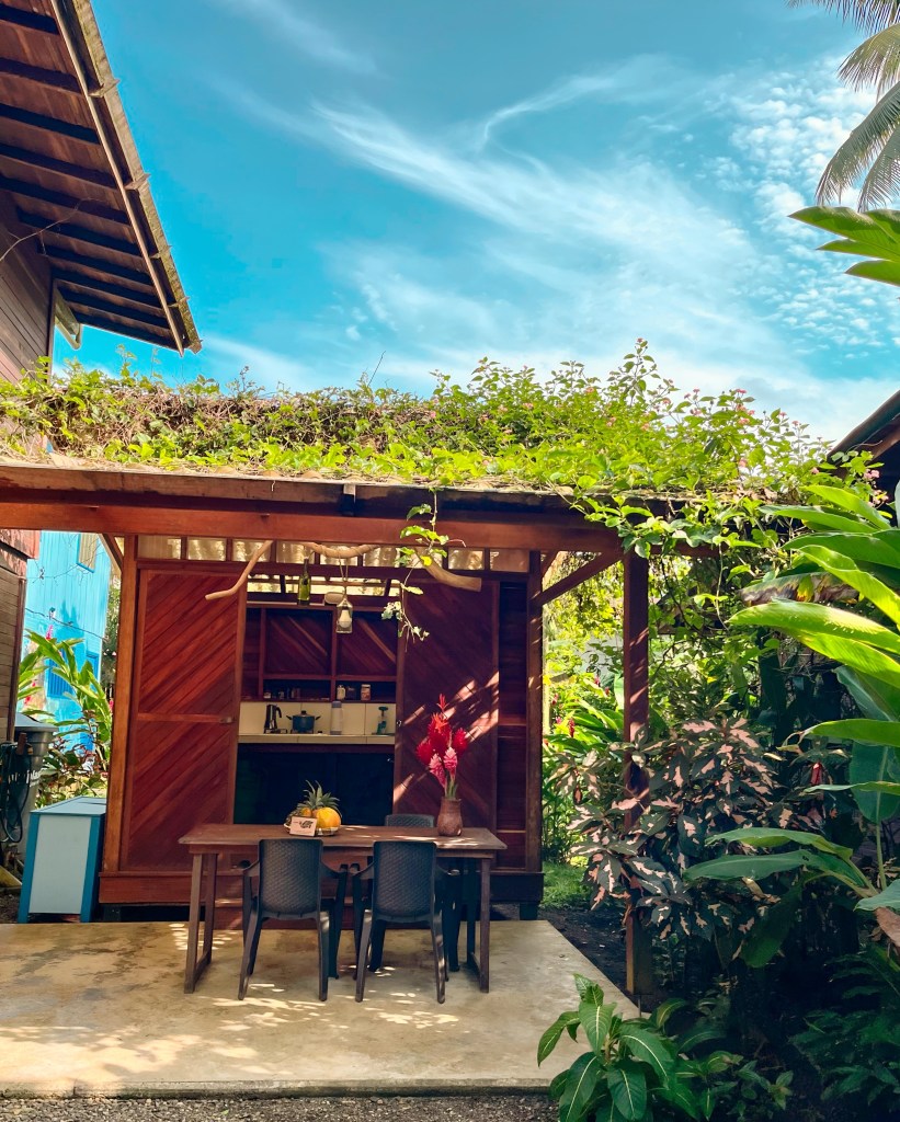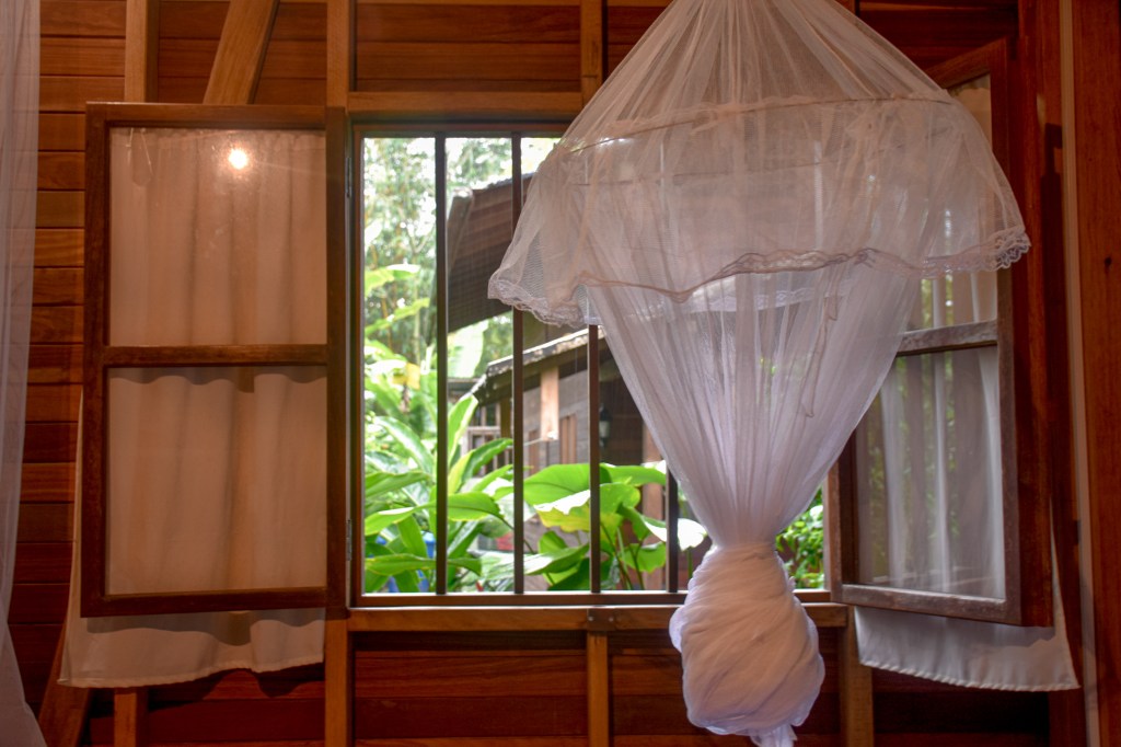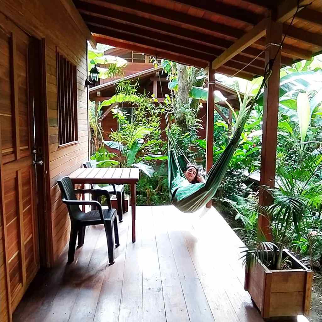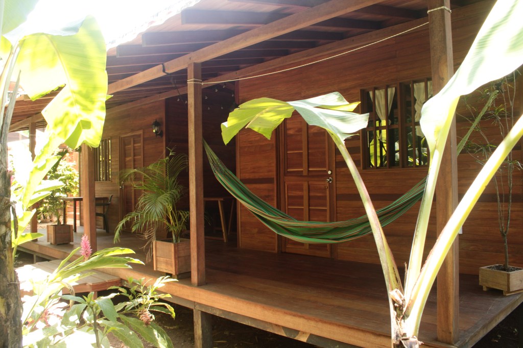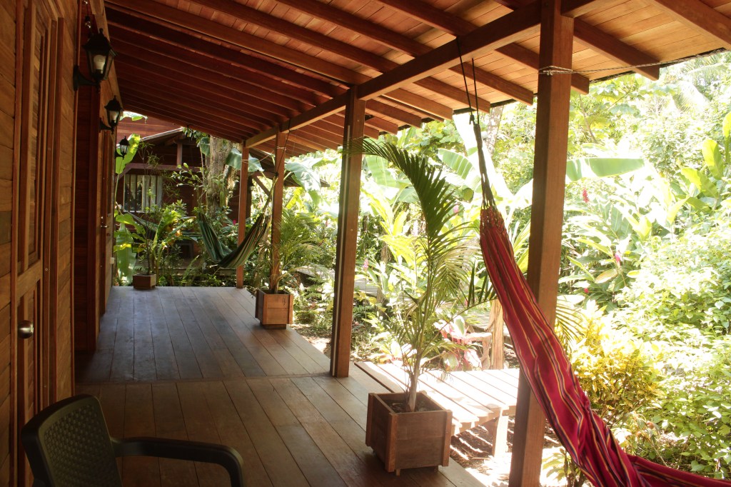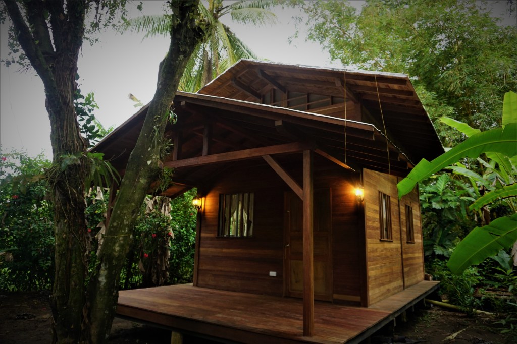 Cabaña del Platanal 1: Cabaña diseñada con la fina y aromática madera de la región, especial para parejas, contiene un baño privada y terraza con vista al jardín. Consta de 1 cama doble y una cama sencilla. Capacidad máxima para tres Personas.