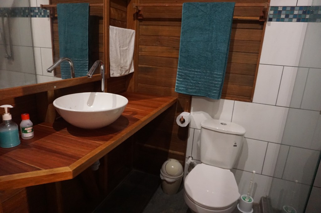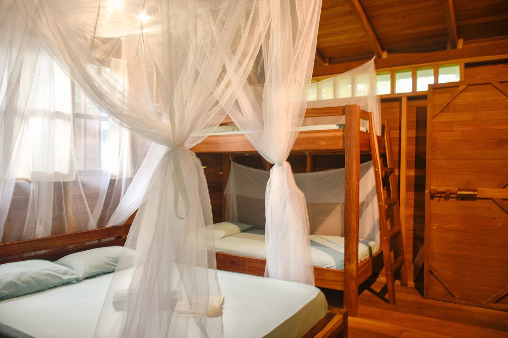 Cabaña del Naranjo: Cabaña inspirada en la elegancia de los Chalets suizos construida con la madera mas fina del tropico siendo nuestra cabaña mas grande con dos etapas y una capacidad maxima para 5 personas con dos camas dobles y dos sencillas y un hermoso baño- tocador privado.