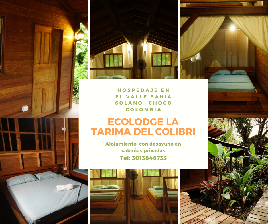 Alojamiento ecológico ubicado frente al océano pacífico en el corregimiento El Valle, Bahía Solano, un destino privilegiado por su gran biodiversidad. La Tarima tiene la capacidad de albergar 12 personas en tres hermosas y cómodas cabañas, cada una con su baño privado; cuenta con un bar mirador donde se ofrecen comidas y bebidas fusionadas con la gastronomía local.