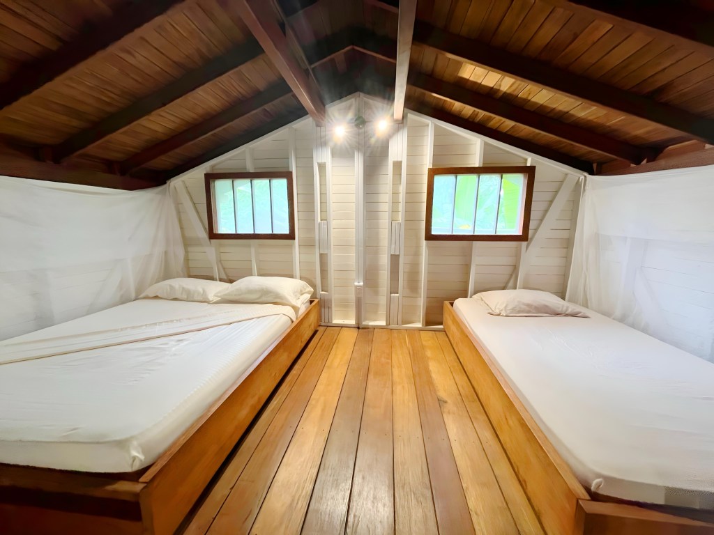 Cabaña del Platanal 2: Esta cabaña es especial para familias y compartir entre amigos. con una cama doble y dos camas sencillas (Camarote), Capacidad Maxima para 3 Personas